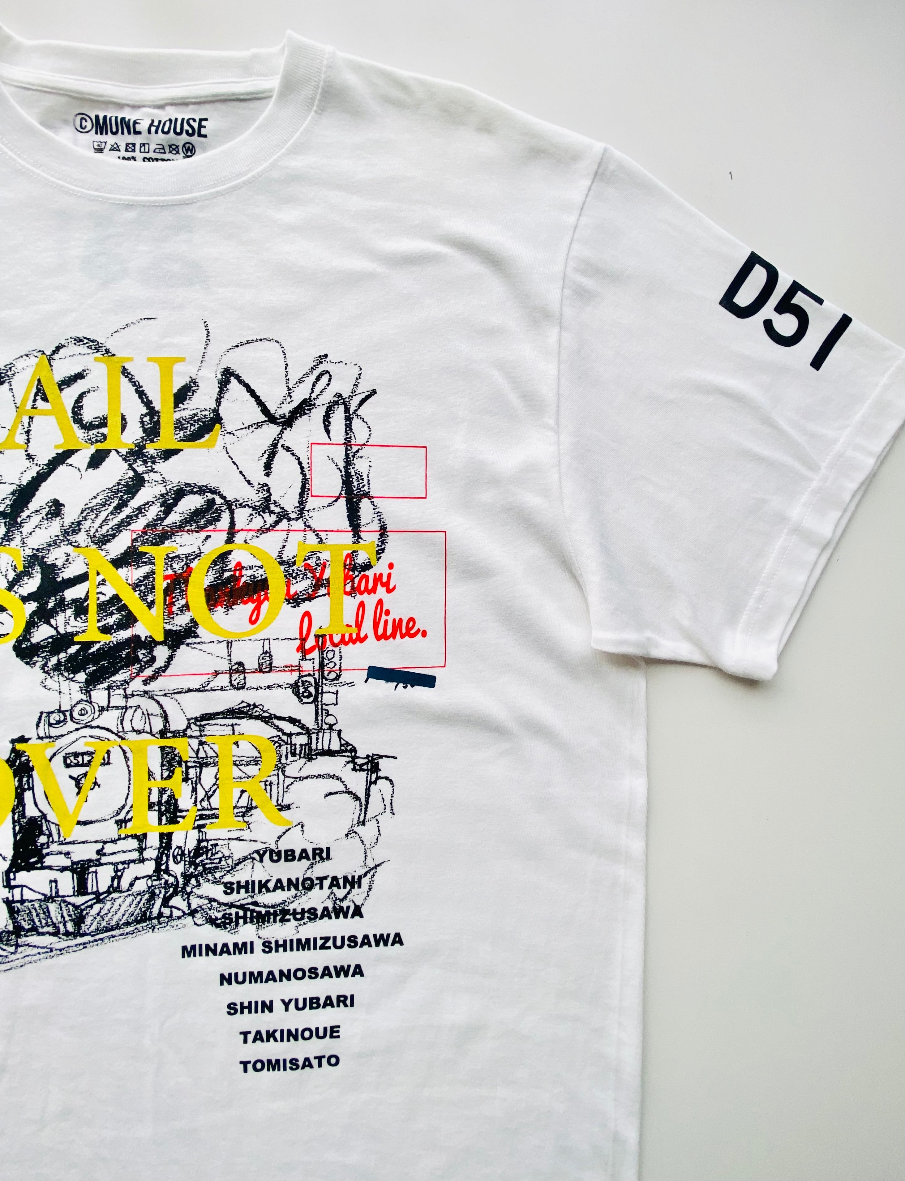 ⚫︎元は夕張支線汽車シリーズTシャツのインクハネやデザイン擦れなどの印刷ミスを起こしてしまったTシャツです。元々シリアル番号をつけている商品の為、そのままアウトレットとしても販売できないので、新たな文字を乗せて販売しています。印刷ミスの目立つ箇所には新たなデザインを乗せて、一つとデザインとして仕上げた一枚になっています。