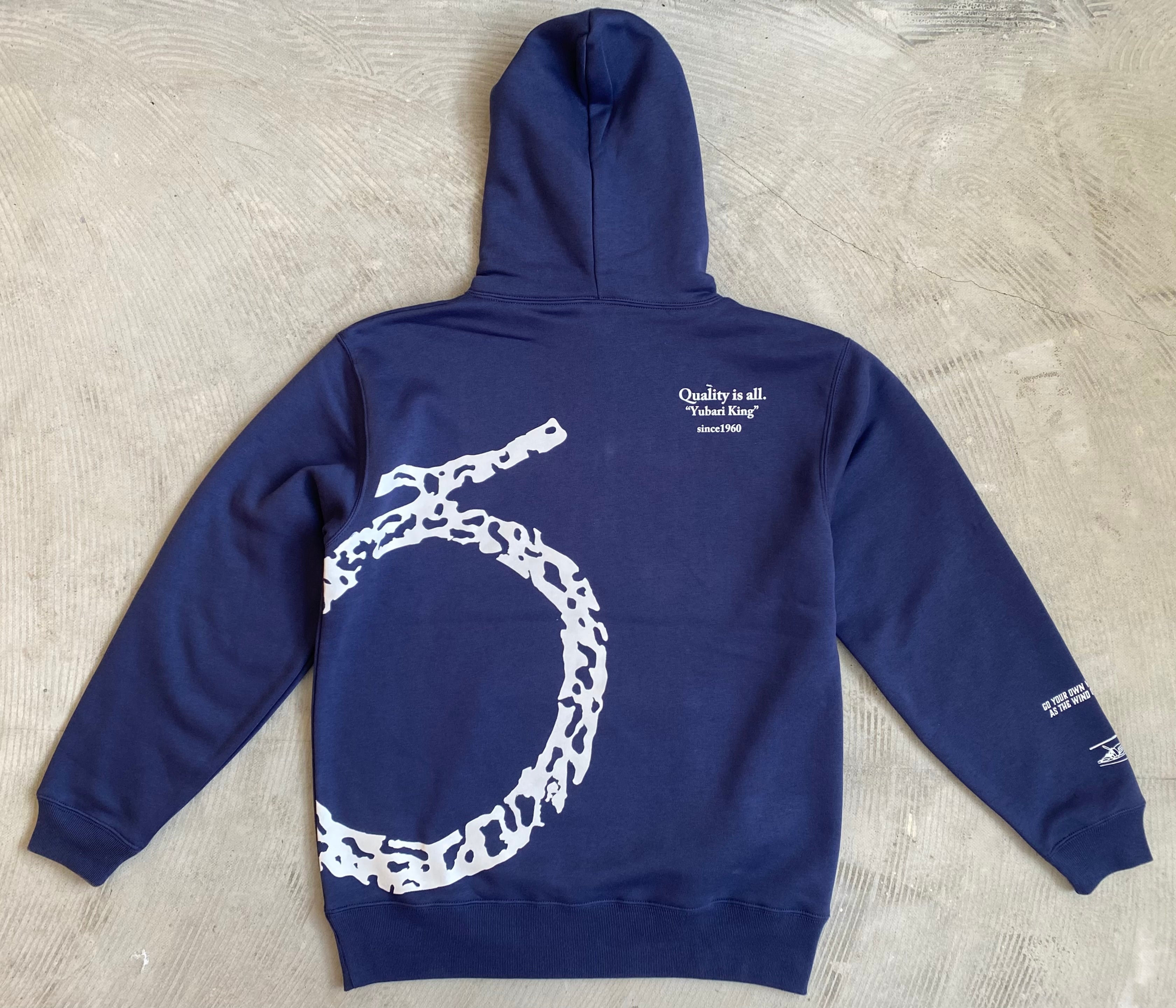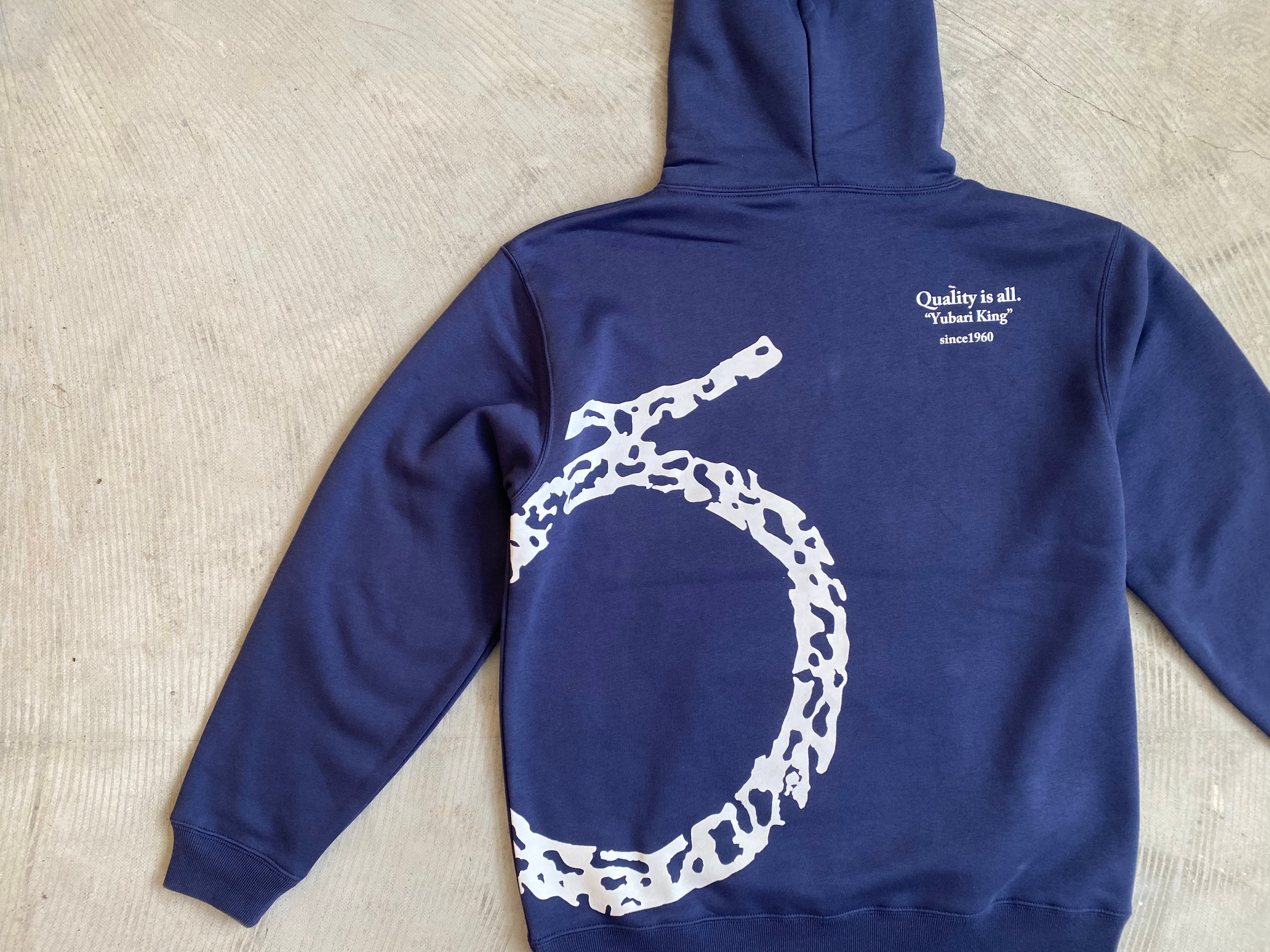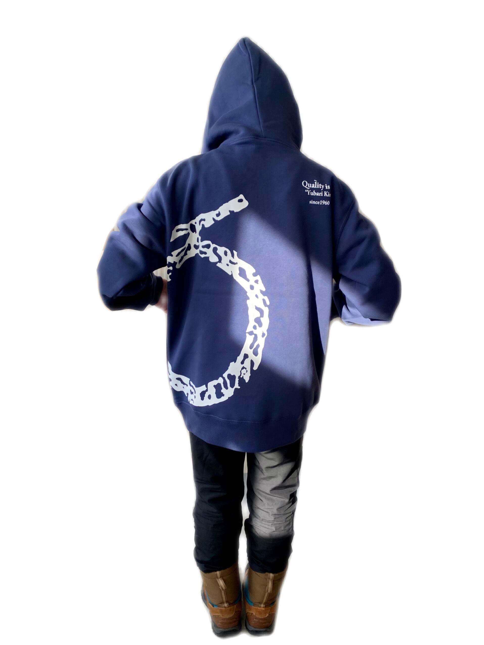 草野くんver.【パイル地 / 裏起毛・パーカー】夕張市農業協同組合 公認「夕張メロン」ロゴ プルオーバーパーカ - Big melon logo - インディゴブルー×ホワイト | mone house