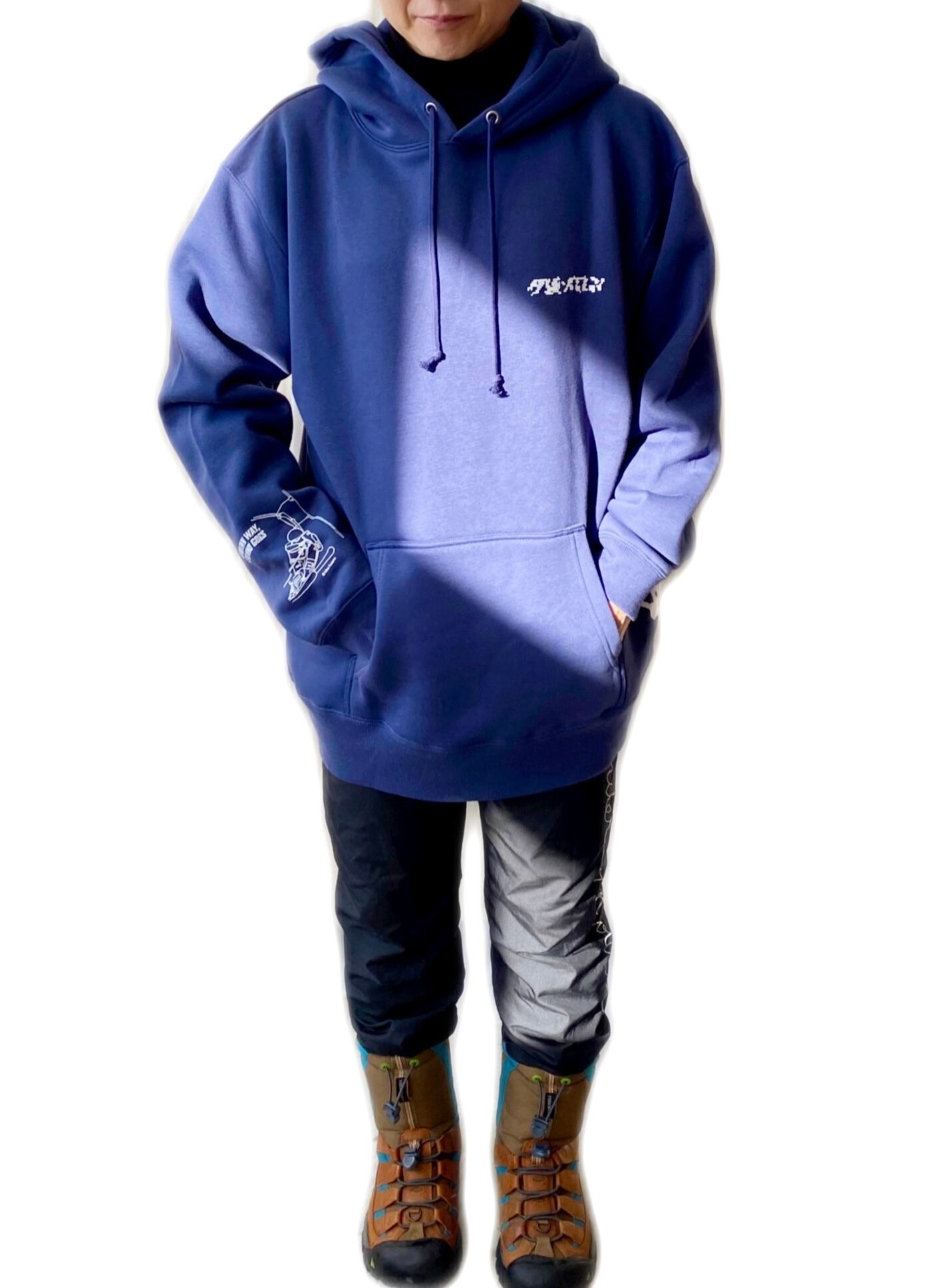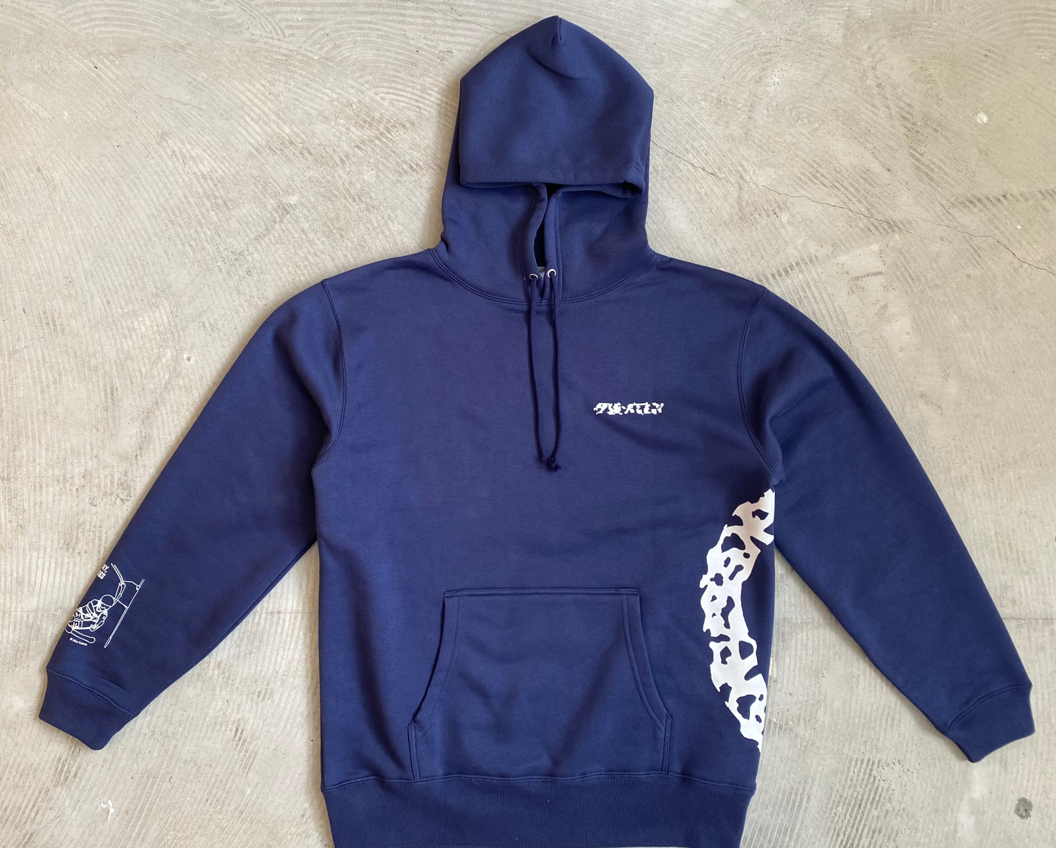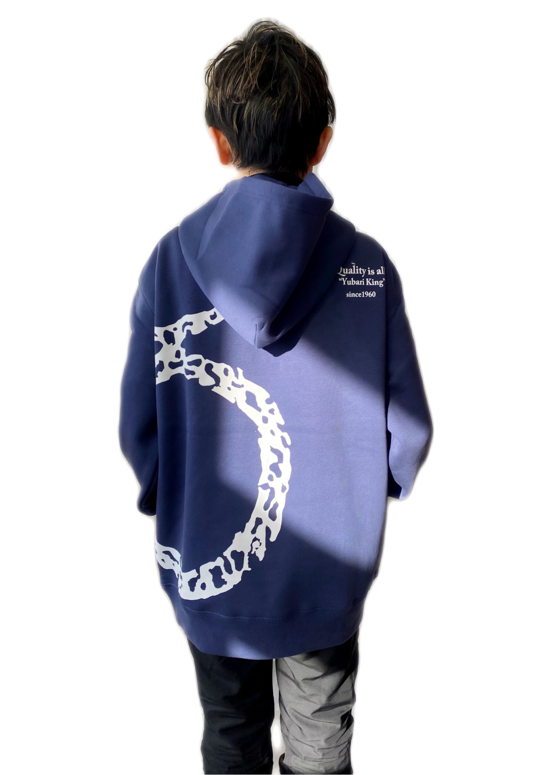 草野くんver.【パイル地 / 裏起毛・パーカー】夕張市農業協同組合 公認「夕張メロン」ロゴ プルオーバーパーカ - Big melon logo - インディゴブルー×ホワイト | mone house